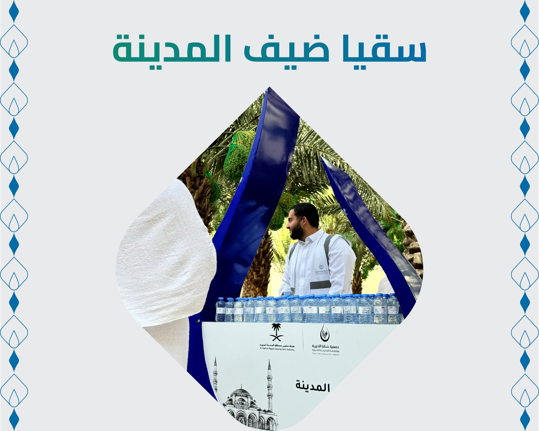 تأمين عبوات الماء وتوزيعها على زوار المدينة وضيوفها.